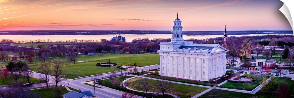 <p>The Nauvoo Illinois Temple overlooks the Mississippi River and is a reproduction of the original temple under the same name that was built in the 1840s and later destroyed by arson in 1848 and tornadoes in 1850. A prominent feature of the Nauvoo Temple is a statue of the founder Joseph Smith and his brother Hyrum Smith.</p>