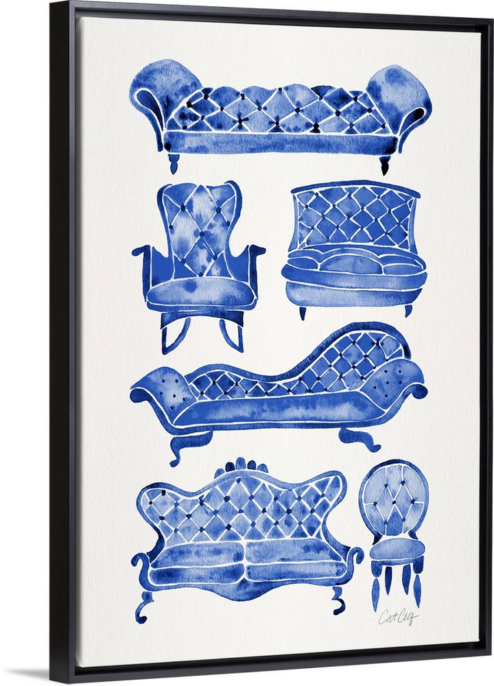 Art Blue Wall Art Cat Coquillette Decorative Art Painting Still Life Watercolor