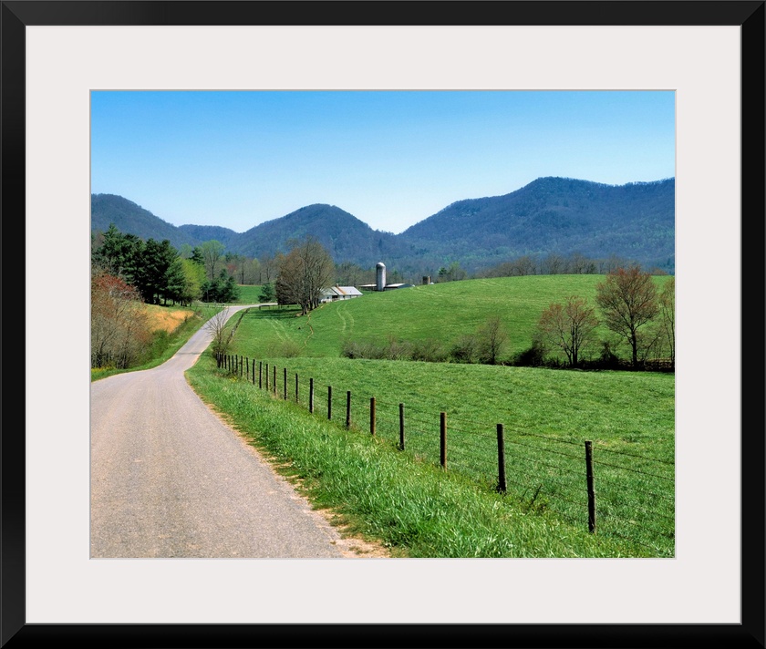 <p>USA, North Carolina, Asheville. A winding road leads to an isolated farm in the hills near Asheville, North Carolina.</p>