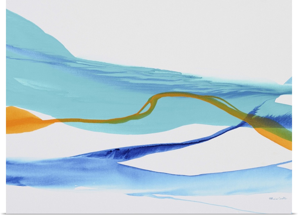 <p>Contemporary abstract painting using tones of blue to make sinuous and smooth strokes of colors.</p>