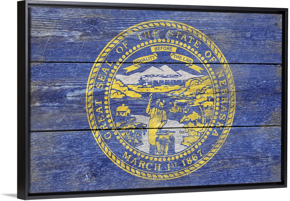<p>The flag of Nebraska with a weathered wooden board effect.</p>