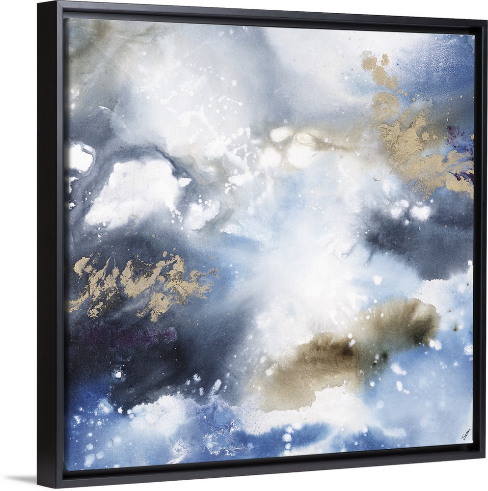 <p>Abstract contemporary painting in blue and gold tones, resembling a cloudy sky.</p>