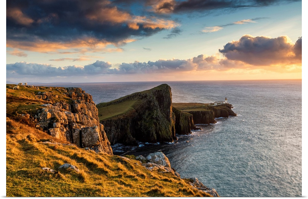 <p>Neist Point Lighthouse At Sunset, Isle Of Skye, Highland Region, Scotland</p>