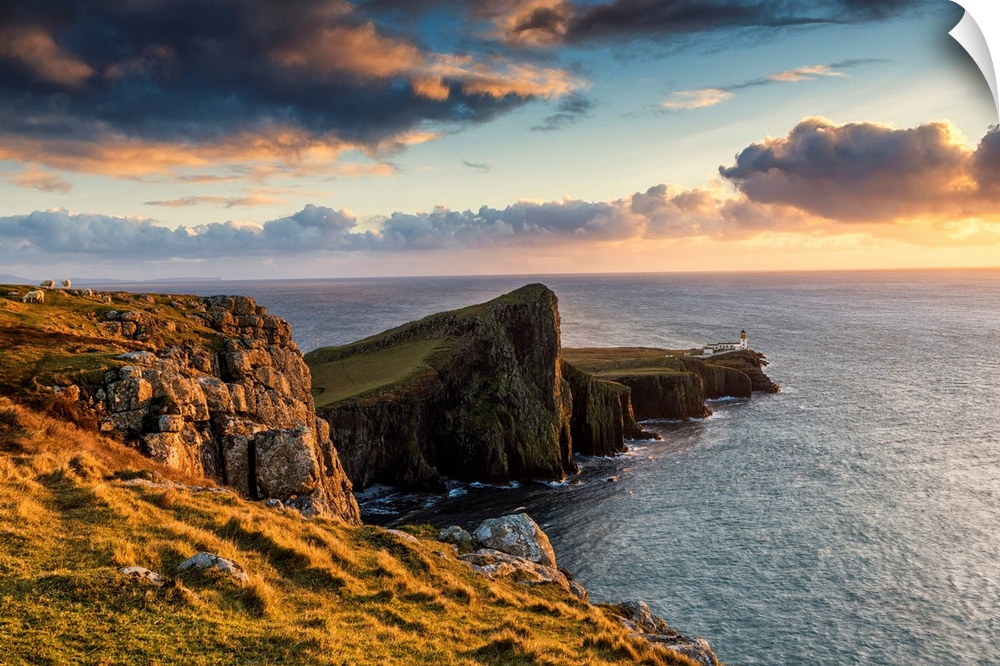 <p>Neist Point Lighthouse At Sunset, Isle Of Skye, Highland Region, Scotland</p>