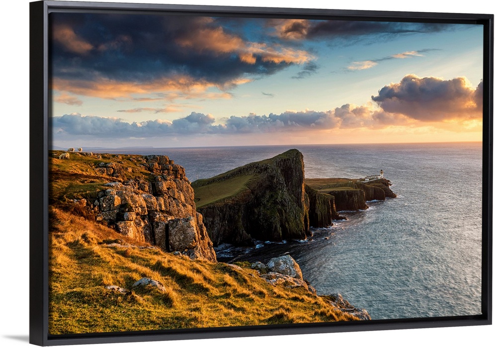 <p>Neist Point Lighthouse At Sunset, Isle Of Skye, Highland Region, Scotland</p>