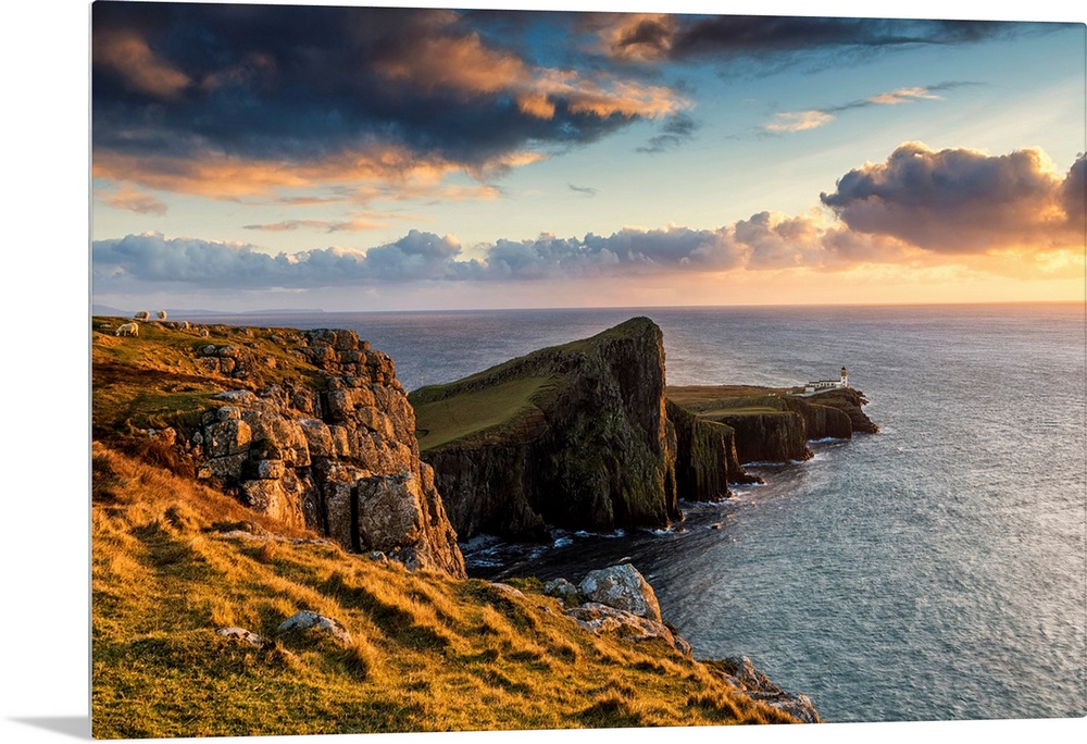 <p>Neist Point Lighthouse At Sunset, Isle Of Skye, Highland Region, Scotland</p>