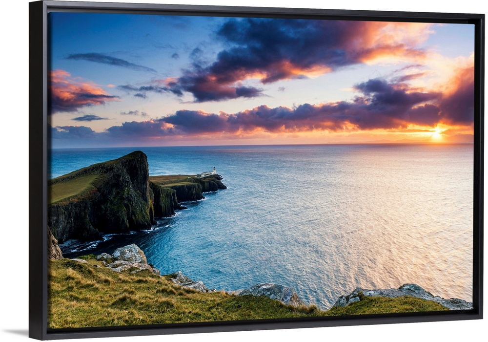 <p>Neist Point Lighthouse At Sunset, Isle Of Skye, Highland Region, Scotland</p>