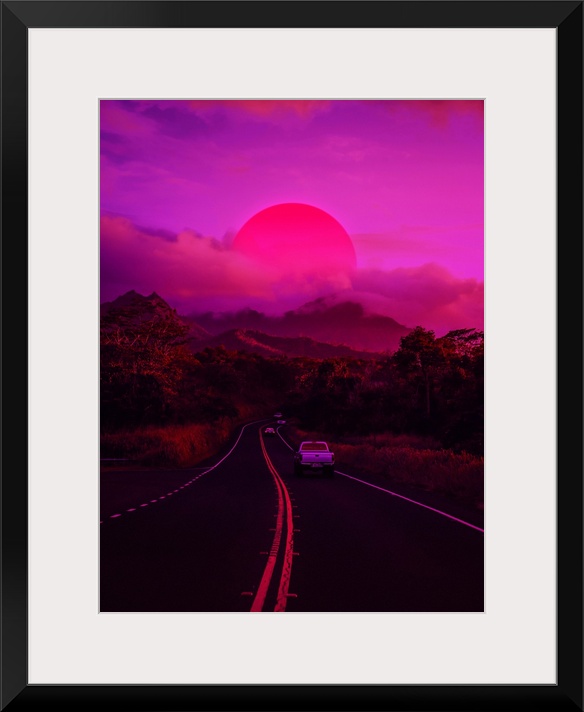 Art Eclectic Landscapes Graphic Art Mountains Road Sunset Ritvik Takkar Vaporwave