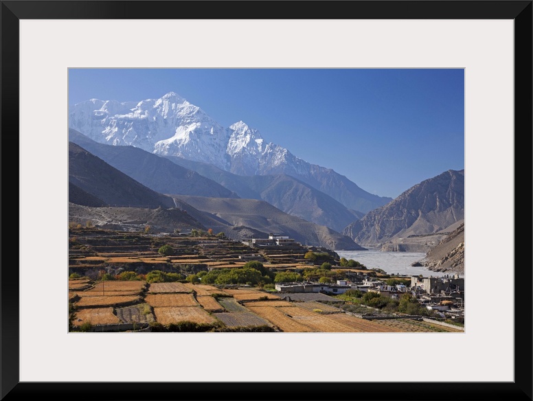 <p>Nepal, Mustang, Kagbeni. The soaring peak of Nilgiri behind the village of Kagbeni.</p>