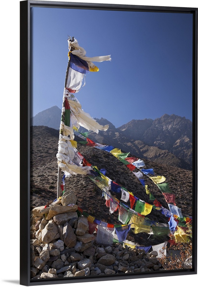 <p>Nepal, Mustang. Prayer flags fluttering at Dajori La Pass, high up above the village of Samar.</p>