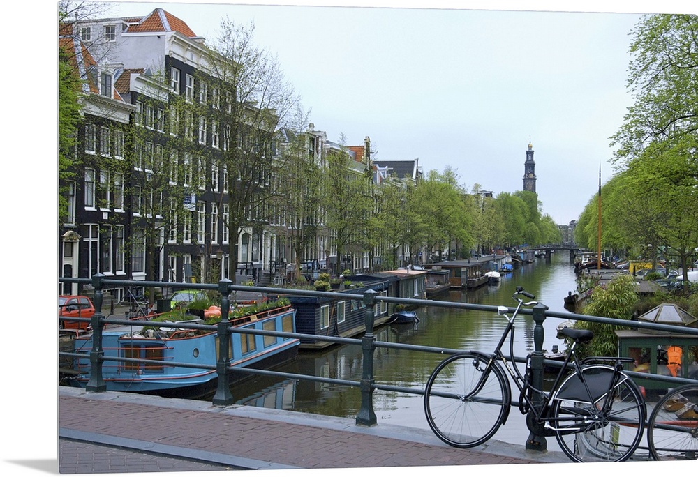 <p>Europe, Netherlands, Holland, Amsterdam, Along the Prinsengracht canal with the Westerkerk in the distance.</p>