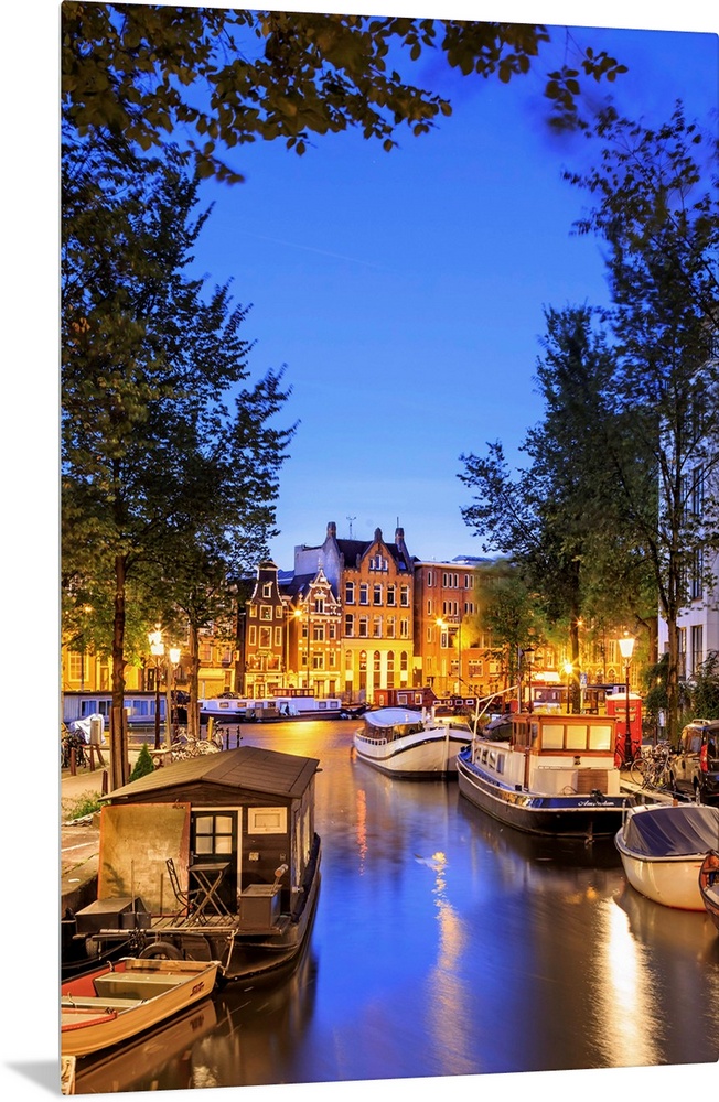<p>Netherlands, North Holland, Benelux, Amsterdam, Groenburgwal Canal at night.</p>