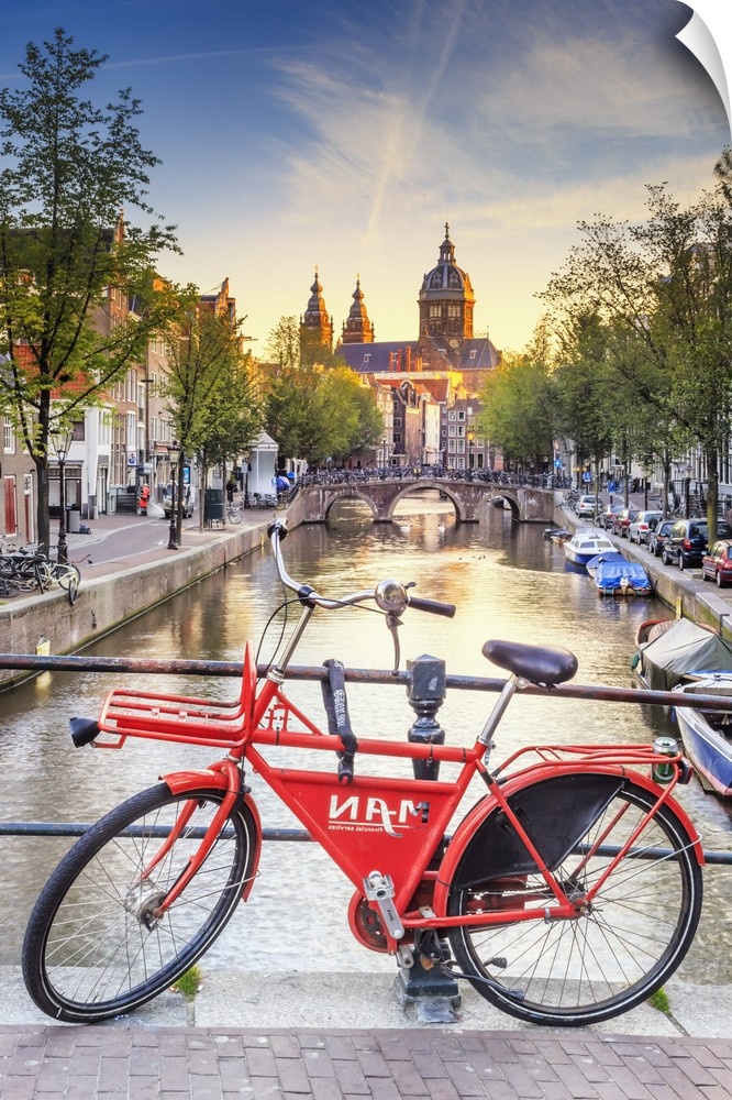 <p>Netherlands, North Holland, Benelux, Amsterdam, Oudezijds Achterburgwal Canal and Saint Nicholas Church (St Nicolaas Kerk).</p>