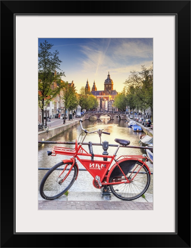 <p>Netherlands, North Holland, Benelux, Amsterdam, Oudezijds Achterburgwal Canal and Saint Nicholas Church (St Nicolaas Kerk).</p>
