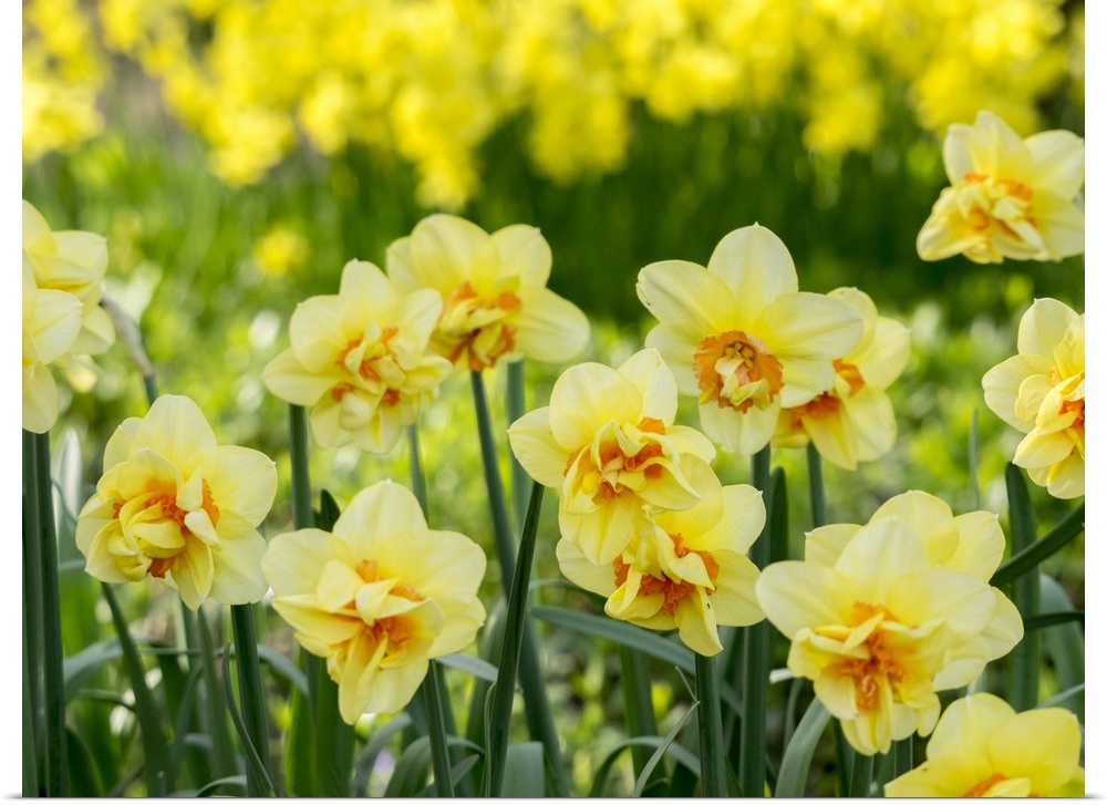 <p>Netherlands, Lisse. A variety of yellow and orange double daffodils (Narcissus hybrids).</p>