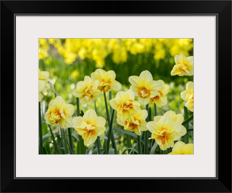 <p>Netherlands, Lisse. A variety of yellow and orange double daffodils (Narcissus hybrids).</p>