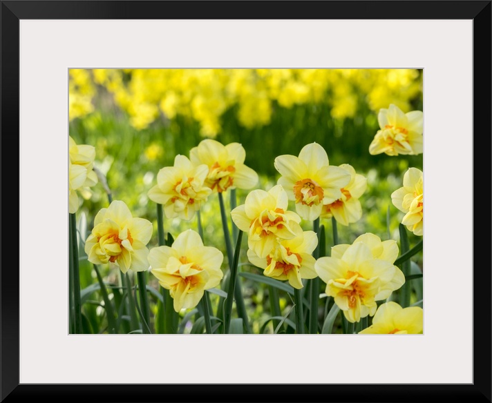 <p>Netherlands, Lisse. A variety of yellow and orange double daffodils (Narcissus hybrids).</p>