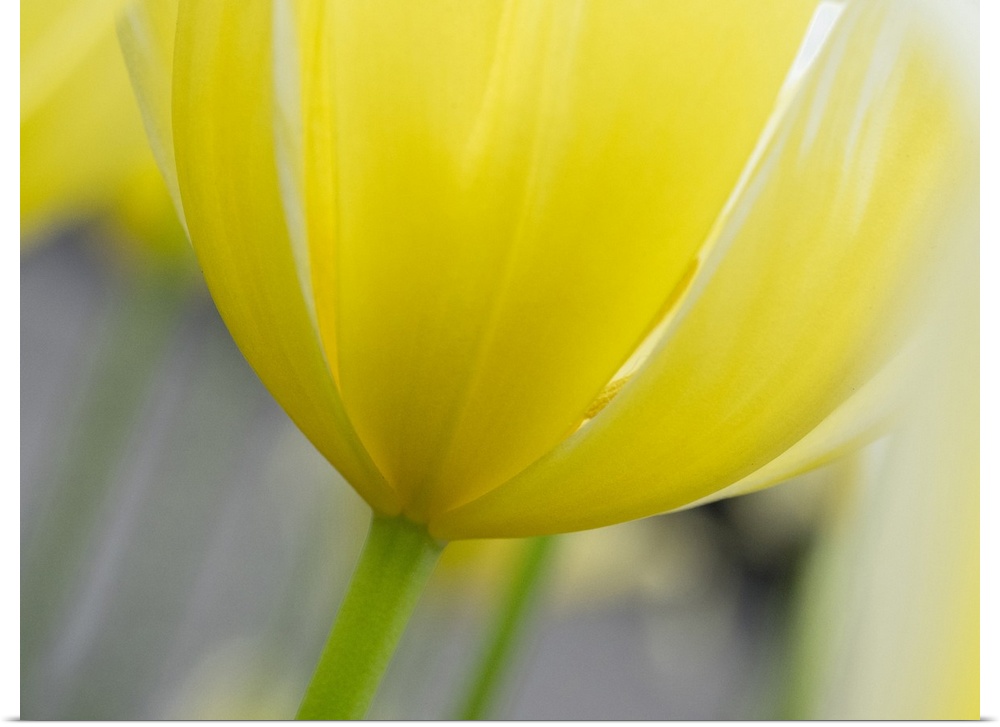 <p>Netherlands, Lisse. Closeup of the underside of a yellow tulip.</p>