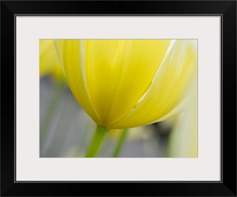 <p>Netherlands, Lisse. Closeup of the underside of a yellow tulip.</p>