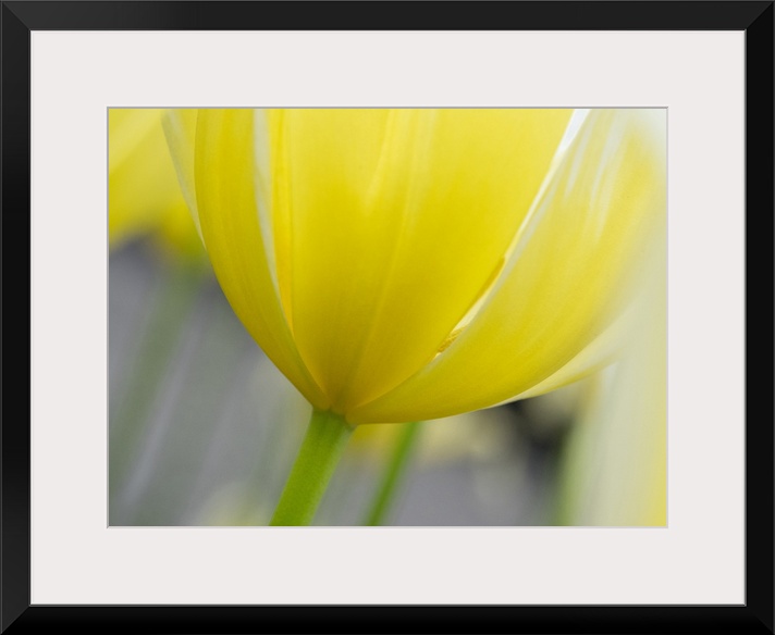<p>Netherlands, Lisse. Closeup of the underside of a yellow tulip.</p>