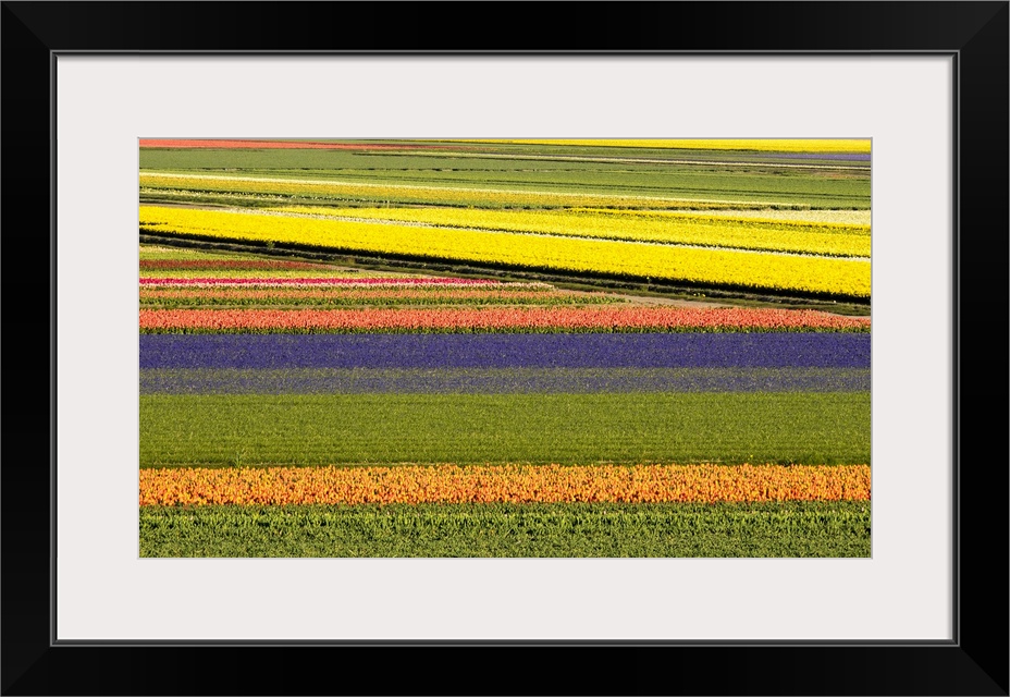 <p>Netherlands, Noord Holland. Agricultural field of tulips.</p>