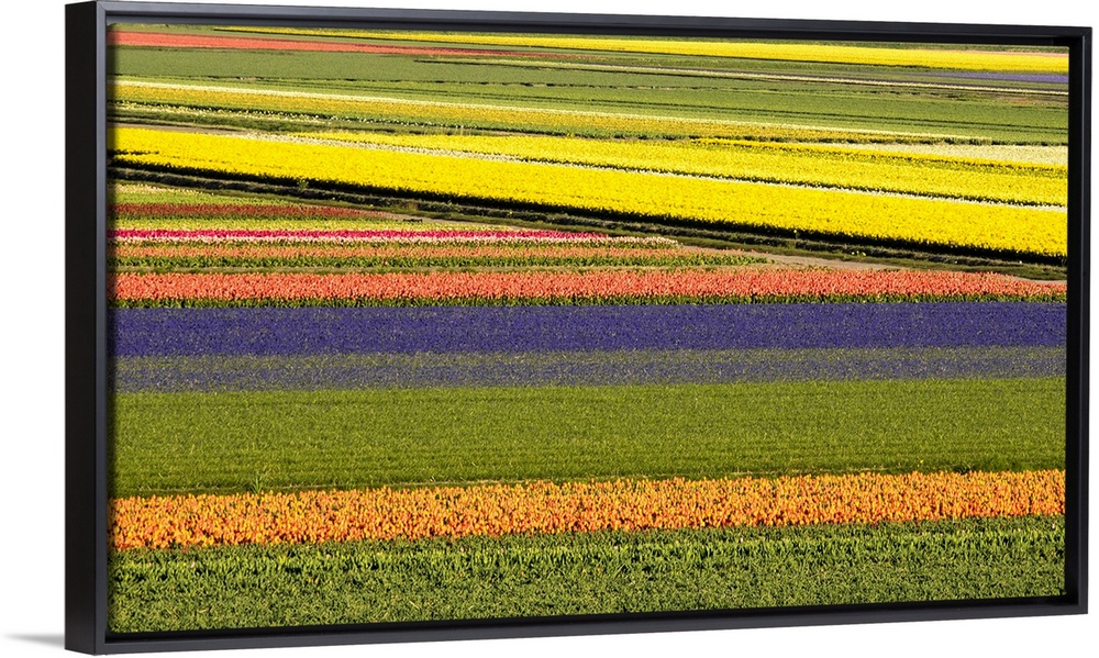 <p>Netherlands, Noord Holland. Agricultural field of tulips.</p>