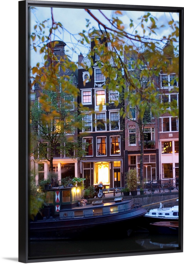 <p>Netherlands, Nederland, North Holland, Noord-Holland, Amsterdam, night view of the canal</p>
