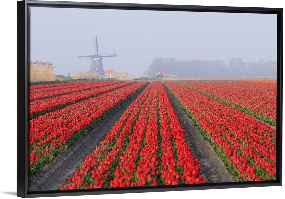 Agriculture Crops Florals Tulip Four Seasons Spring Landscapes Mist and Fog Photography Red Wall Art Netherlands