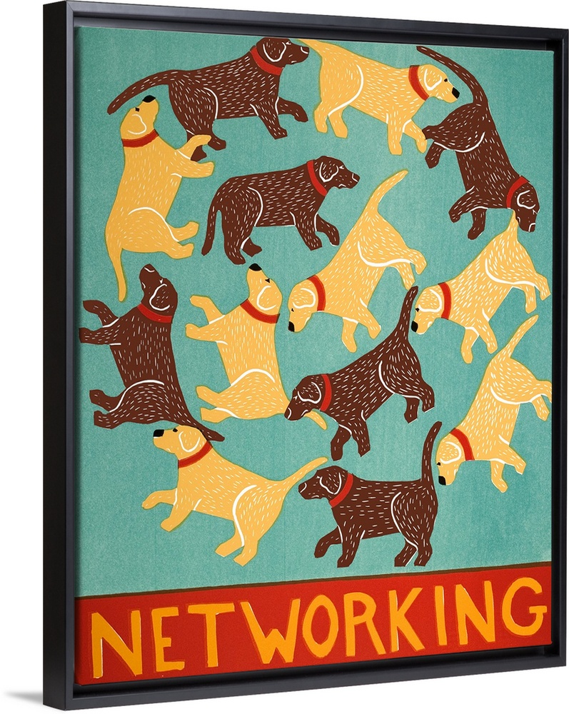 <p>Illustration of chocolate and yellow labs creating circles with the phrase "Networking" written on the bottom.</p>