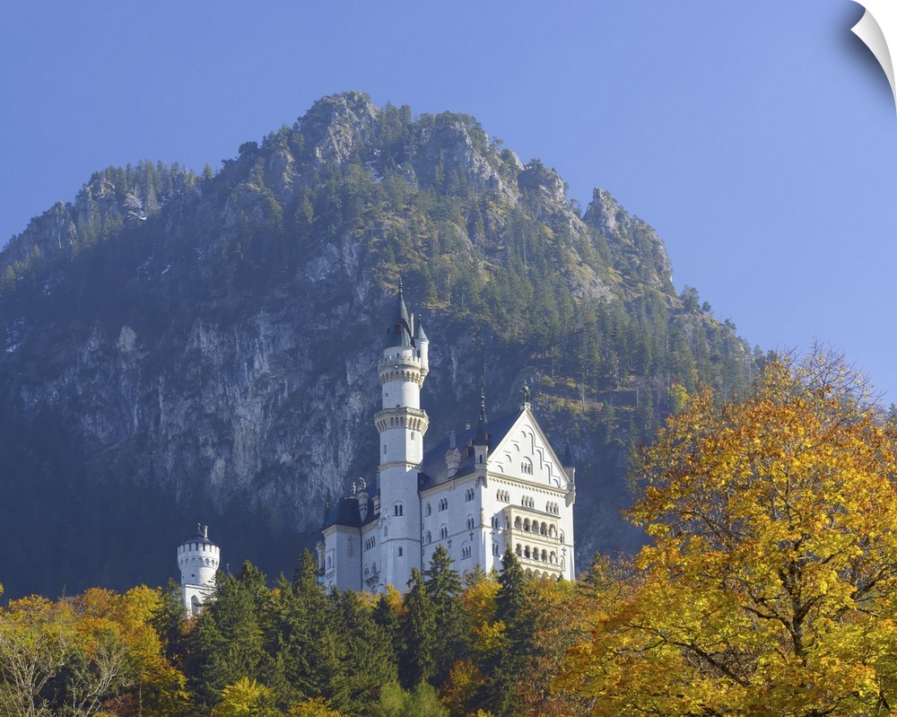 <p>Neuschwanstein Castle above the village of Hohenschwangau in autumn, Bavaria, Germany</p>