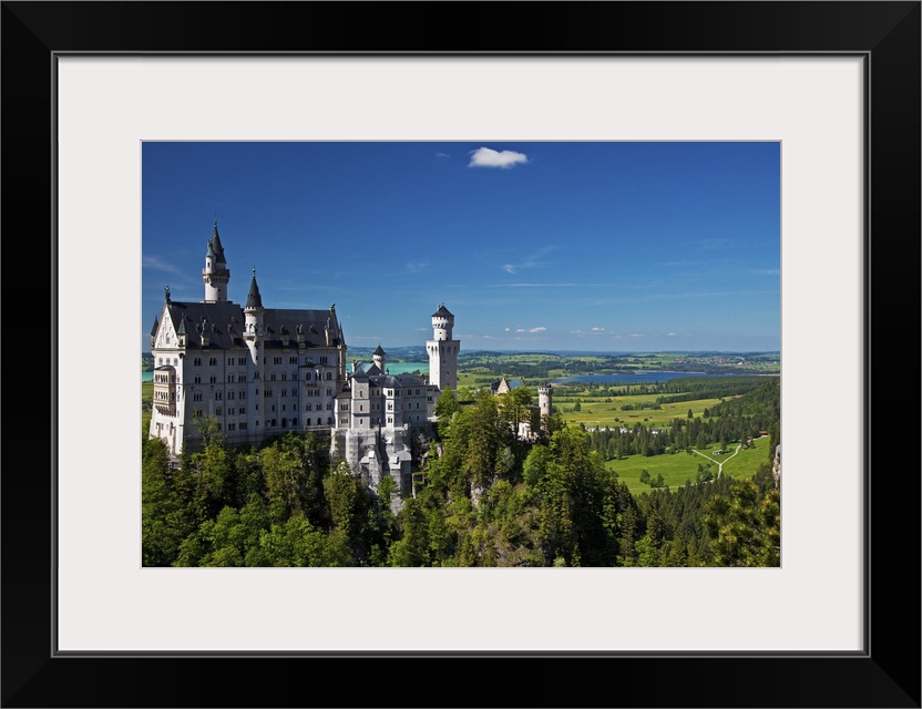 <p>Neuschwanstein Castle viewed from the Marienbrucke, Hohenschwangau, Schwangau, Bayern, Germany.</p>