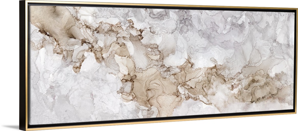 <p>Horizontal abstract painting in shades of gray and brown in the style of marble.</p>