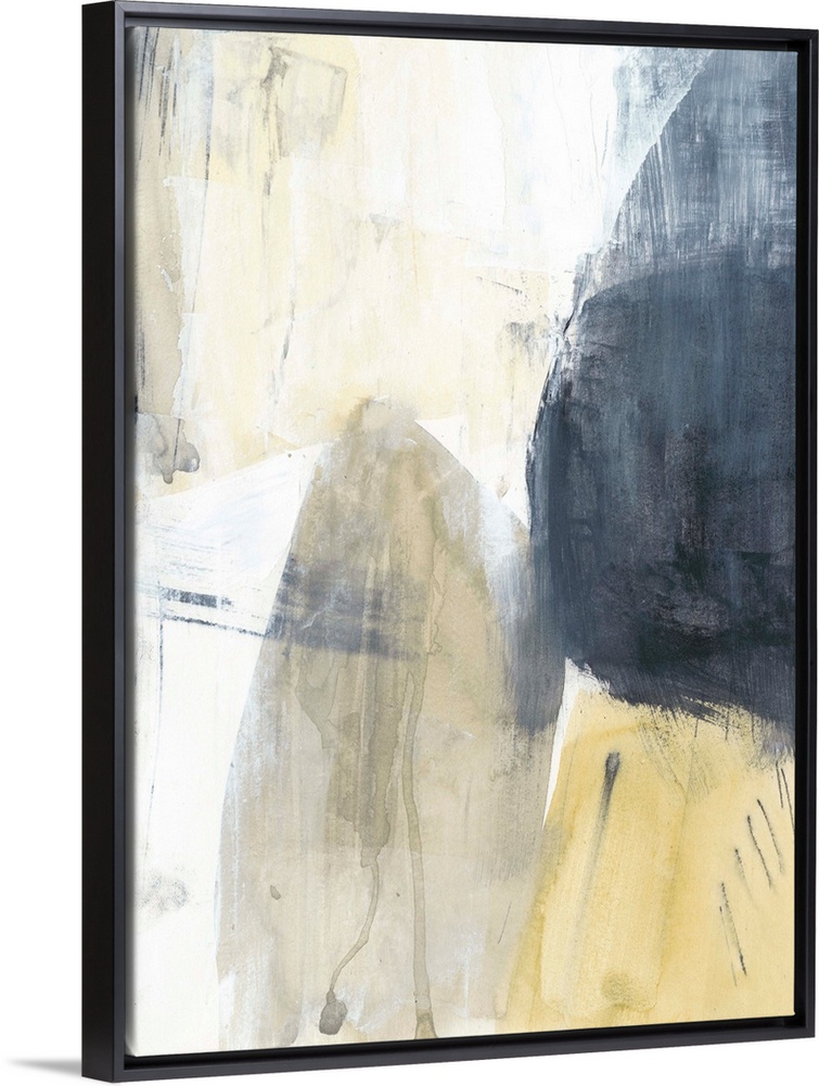 <p>This contemporary artwork features blocks of gray and yellow with distressed textures to illustrate the struggle between conflicting ideas.</p>