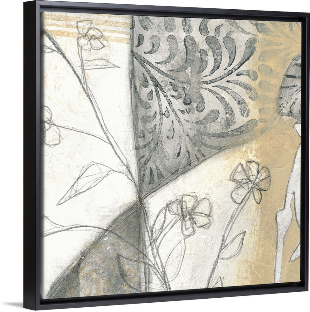<p>Contemporary artwork using neutral tones and floral elements in a pencil drawn style.</p>