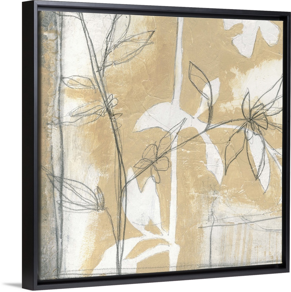 <p>Contemporary artwork using neutral tones and floral elements in a pencil drawn style.</p>