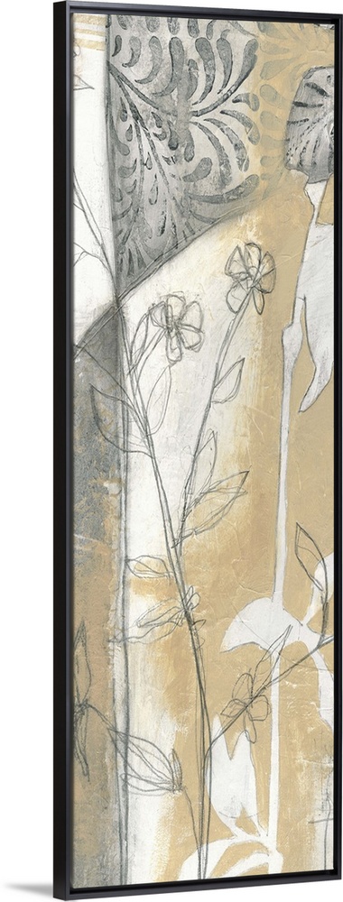 <p>Contemporary painting using pencil sketched elements and floral decorations.</p>