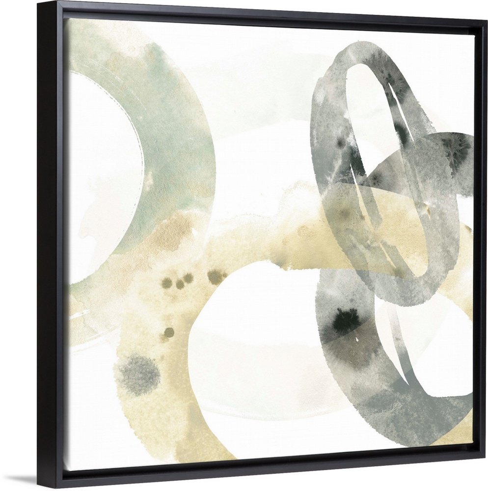 <p>Abstract art print of organic rings in beige and grey on a white background.</p>