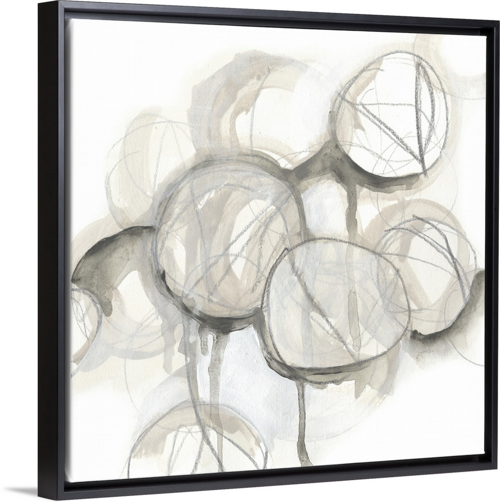 <p>Contemporary watercolor abstract painting consisting of various circular shapes in neutral tones.</p>