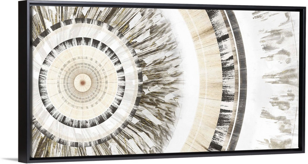 <p>Abstract circular design with curved bands of cream and black.</p>