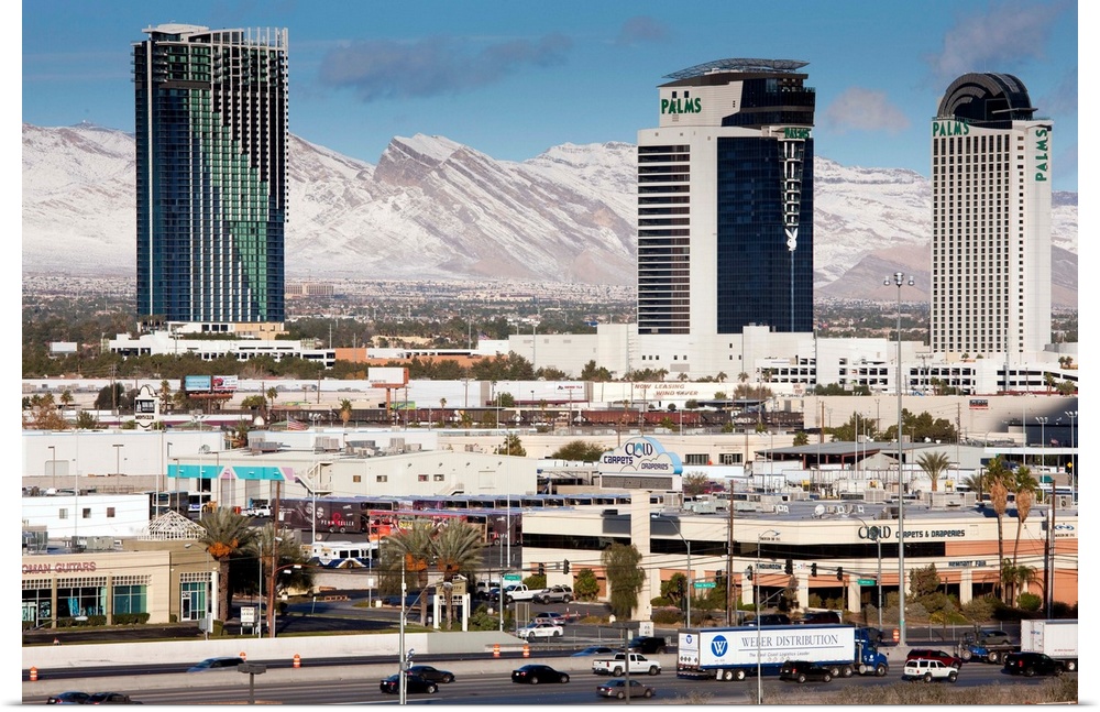 <p>USA, Nevada, Las Vegas, view west of Interstate 15 showing snow on mountains, morning</p>