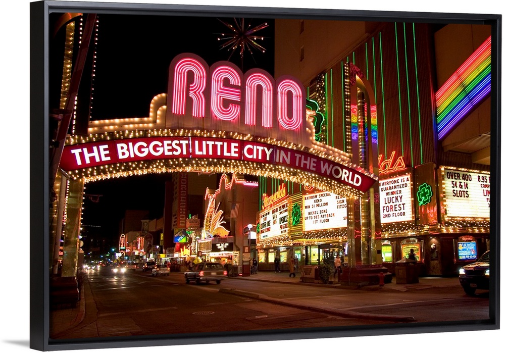<p>Nevada, Reno. Neon lights and casinos along Virginia Street.</p>