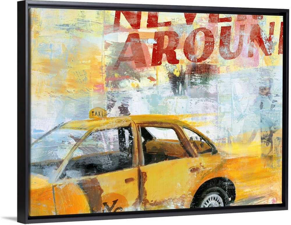 Art Decorative Art Mixed Media Art Cory Steffen Transportation Car Taxi Yellow Wall Art Mustard Yellow