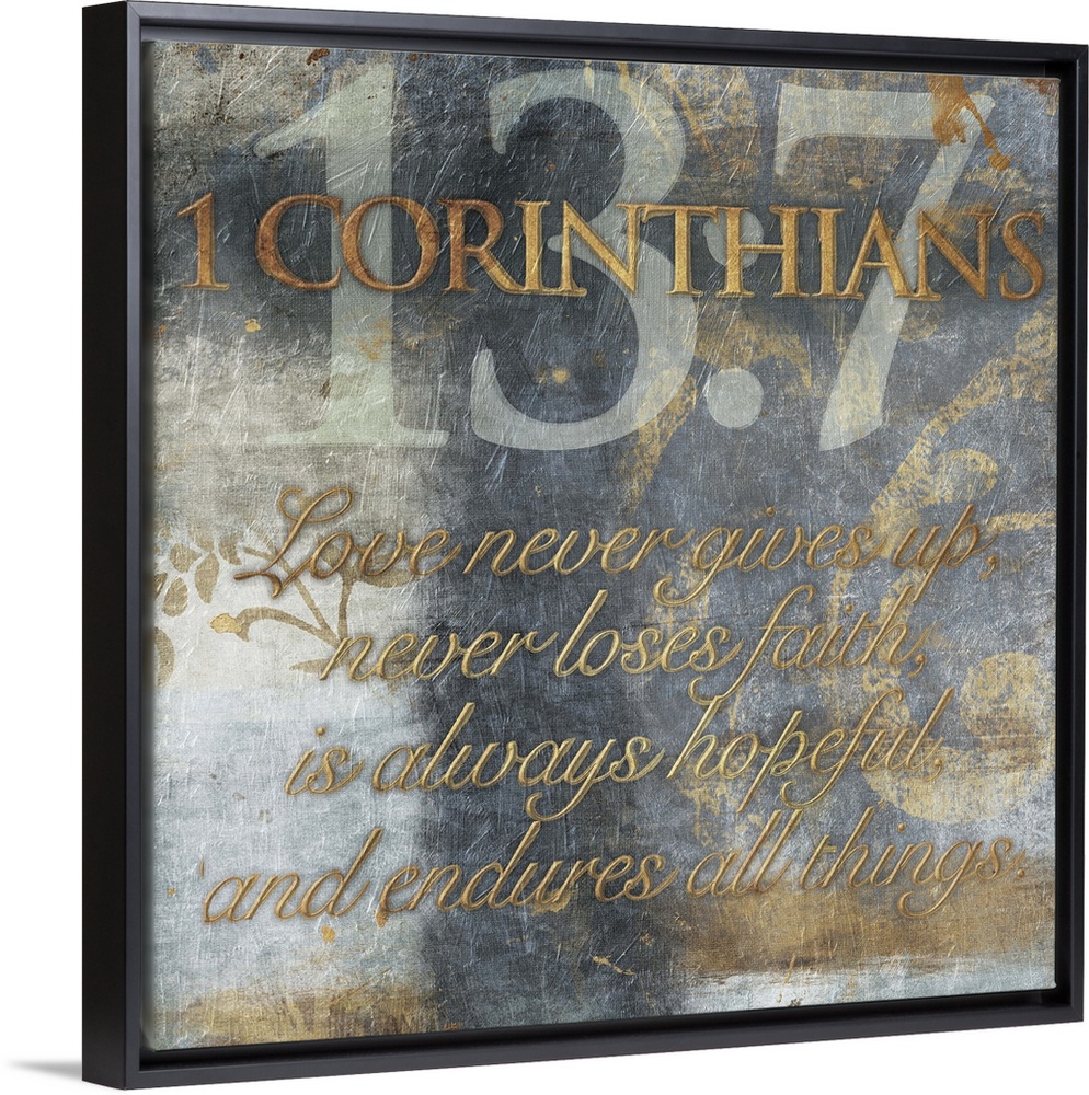 <p>Typography art of the Bible verse 1 Corinthians 13:7.</p>