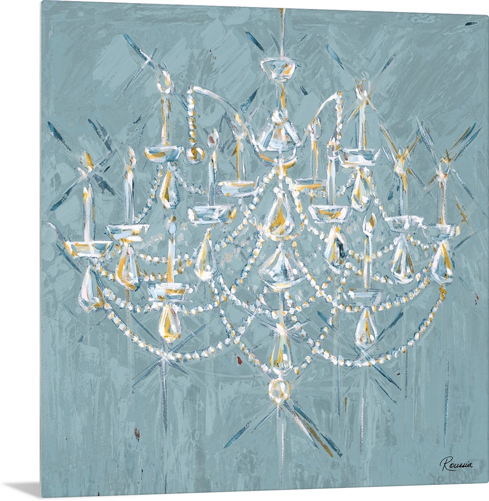 Antiques and Collectibles Art Glam Blue Wall Art Chandeliers Decorative Art Heather French-Roussia Painting