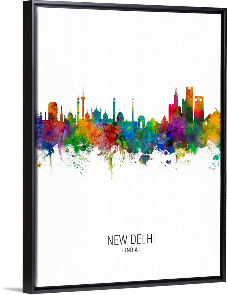 <p>Watercolor art print of the skyline of New Delhi, India</p>