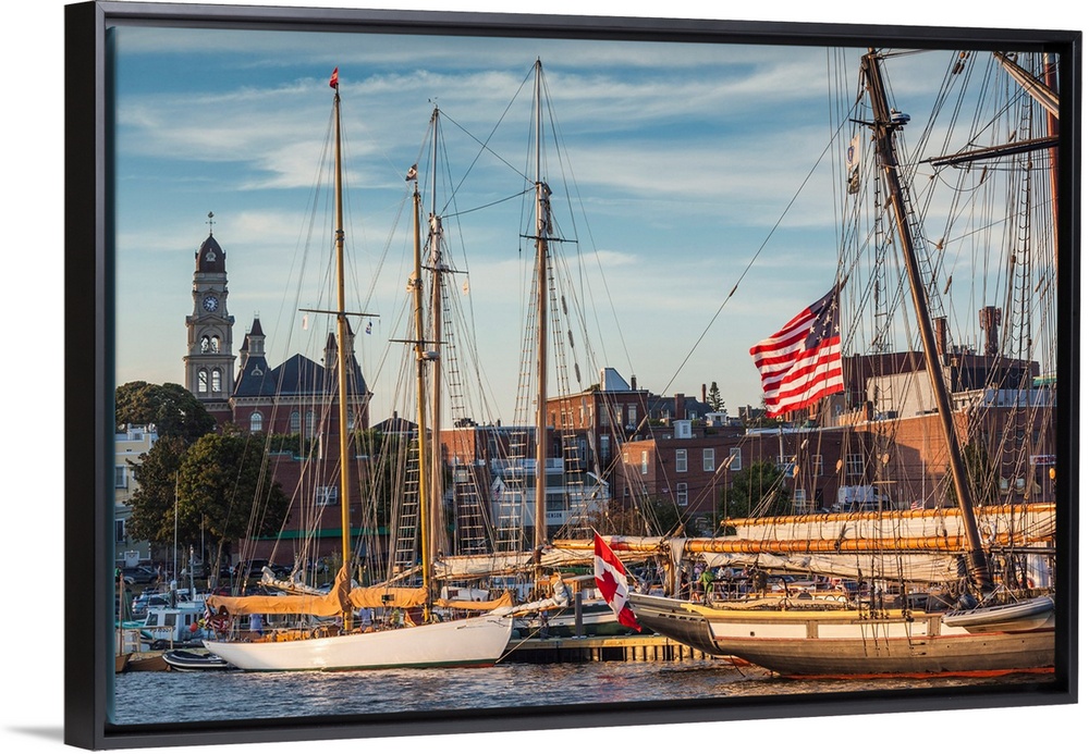 <p>USA, New England, Massachusetts, Cape Ann, Gloucester, Gloucester Schooner Festival, schooners, dusk.</p>