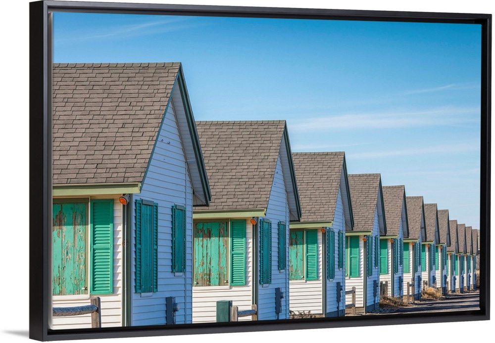 <p>USA, New England, Massachusetts, Cape Cod, Provincetown, vacation cottages along Cape Cod Bay, winter.</p>