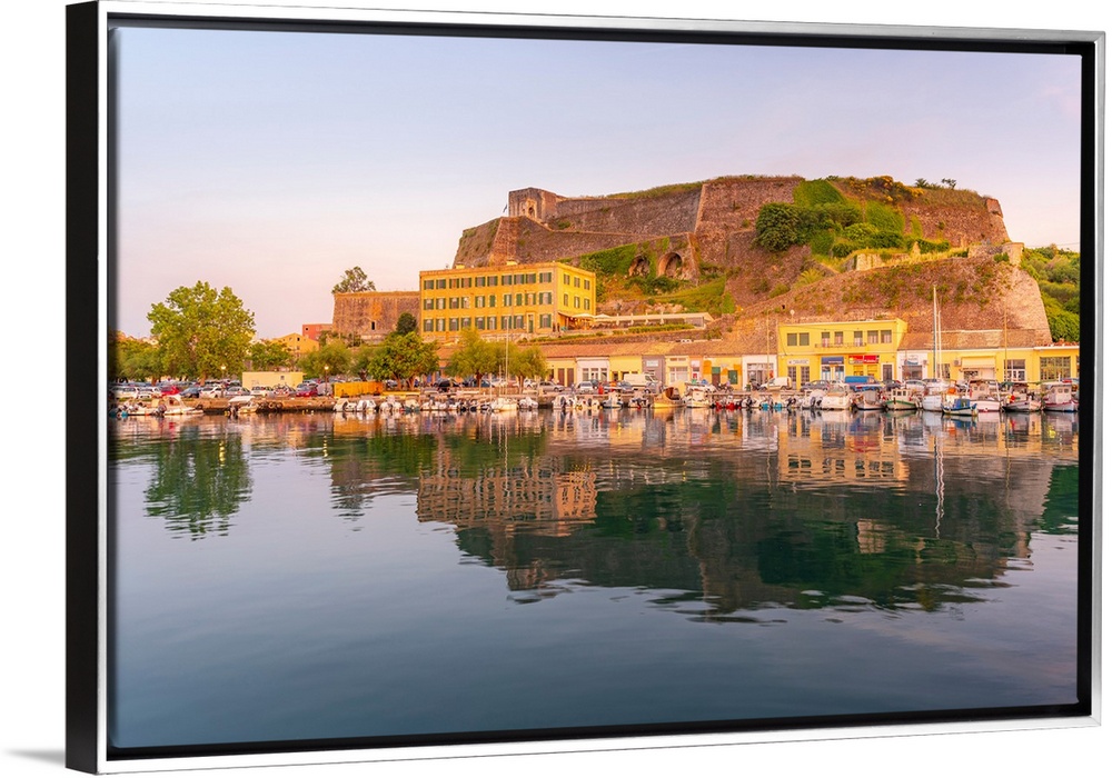 <p>View of the New Fortress overlooking the Old Port Marina at sunset, Corfu, Ionian Sea, Greek Islands, Greece, Europe</p>
