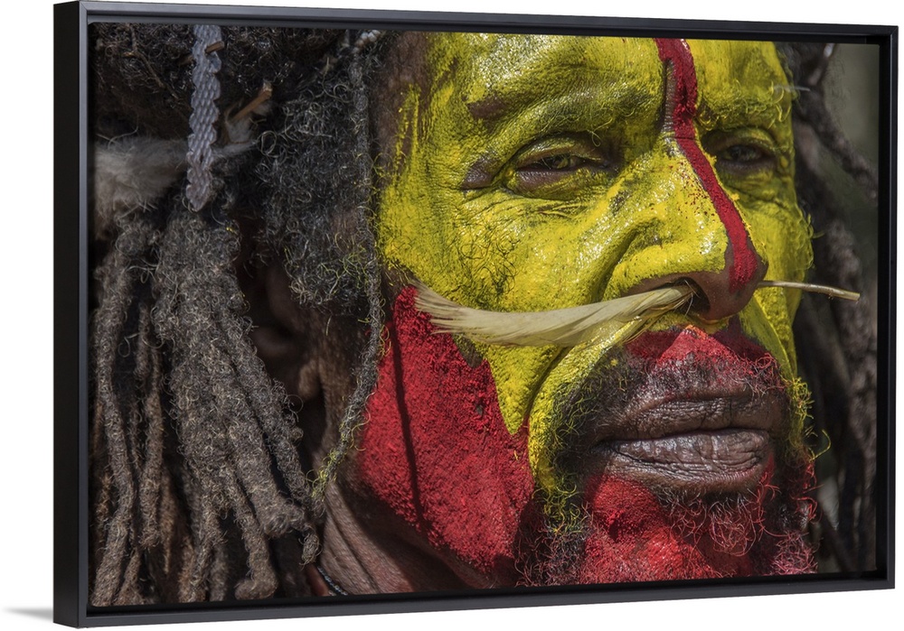 <p>New guinea man in the Wabia village of the tari valley area of the southern highlands. He is part of a group preparing to perform a 'sun dance' to help the ill, Wabia, southern highlands, papua new guinea.</p>