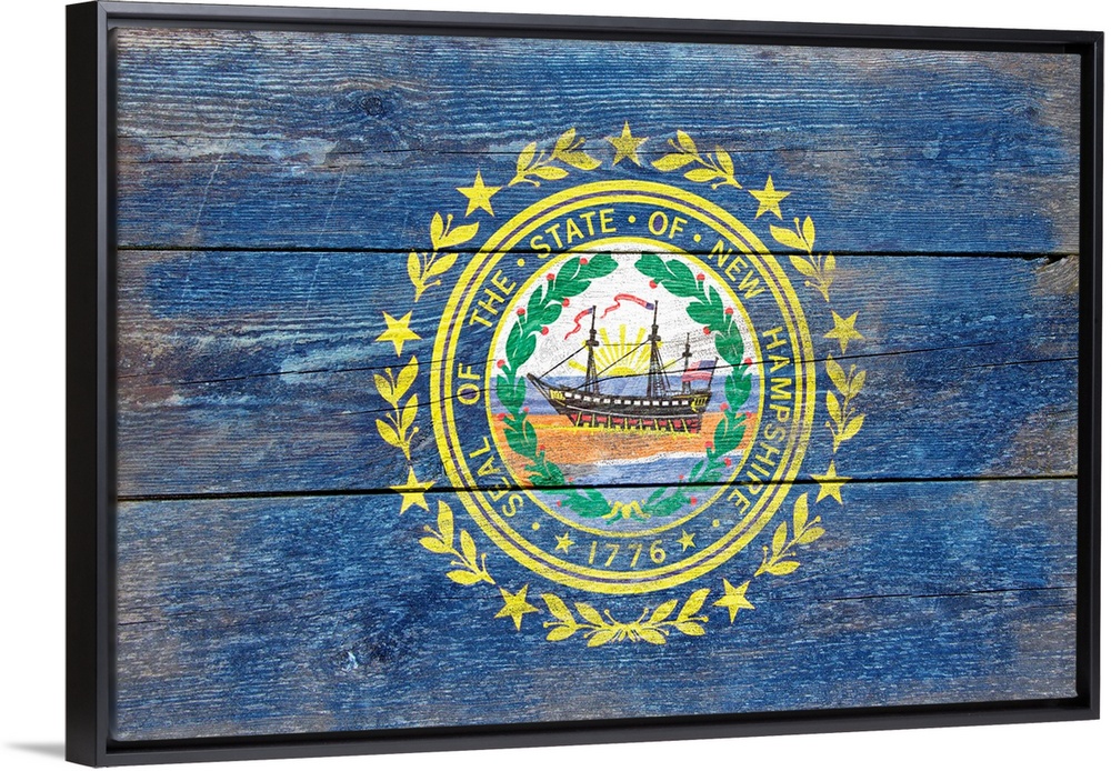 <p>The flag of New Hampshire with a weathered wooden board effect.</p>